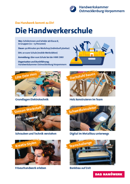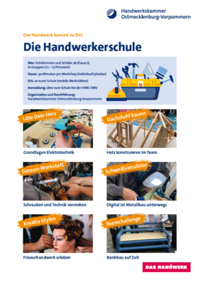 Seit zwei Jahren arbeitet RUN intensiv mit der Handwerkskammer Ostmecklenburg-Vorpommern zusammen, um die Berufsorientierung in unserer Region praxisnah zu gestalten. Nun geht die HWK mit einem neuen Projekt an den Start: Die Handwerkerschule.