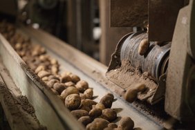 Acht bis zehn unterschiedliche Kartoffelsorten werden aus regional kontrolliertem Anbau von umliegenden Landwirtschaftsbetrieben ganzjährig geliefert. Zuerst einmal auf Zucker-, Stärke- und Nitratgehalt hin untersucht, um dann für unterschiedliche Weiterverarbeitungen eingesetzt zu werden.