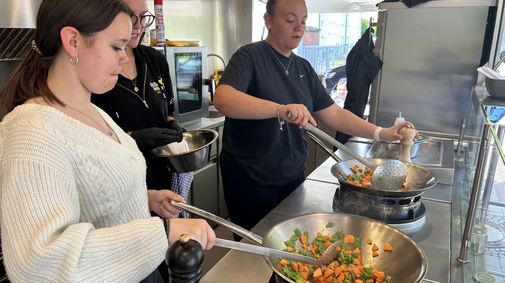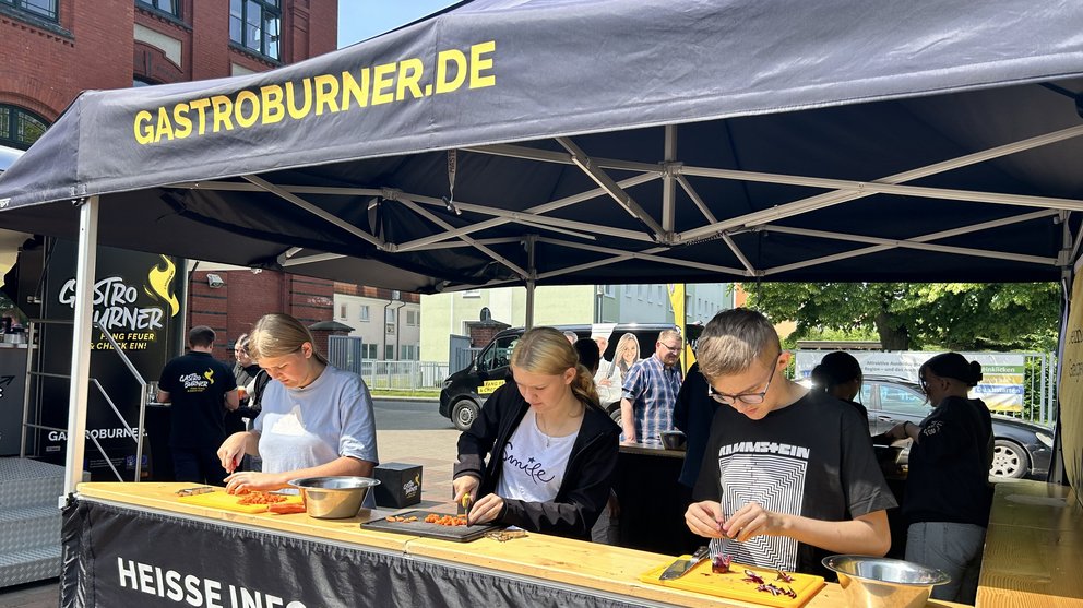 Ein besonderer Höhepunkt war der Foodtruck der Ausbildungskampagne des Landes und des DEHOGAs „Gastroburner“. Das Foodtruck-Team informierte über Karrieremöglichkeiten in der Gastronomie und begeisterte die Schüler für die vielfältigen Chancen in dieser Branche mit praktischen gastronomischen Inhalten. Es wurde ein schmackhaftes 2-Gänge Menü in der integrierten Küche des Trucks gekocht und leckere Sommercocktails dazu gemixt.