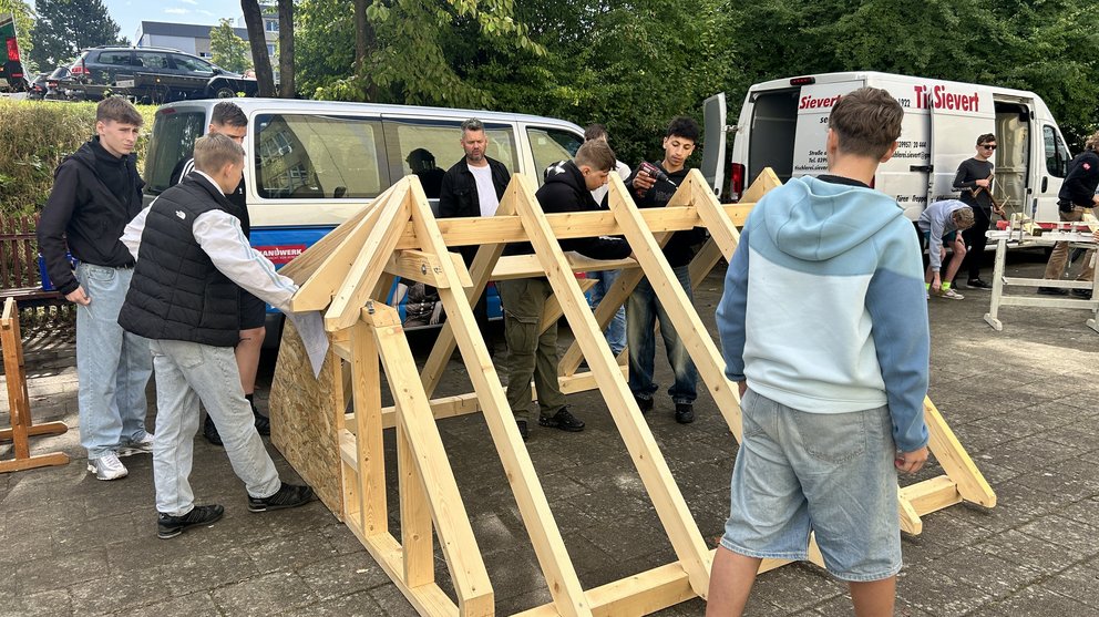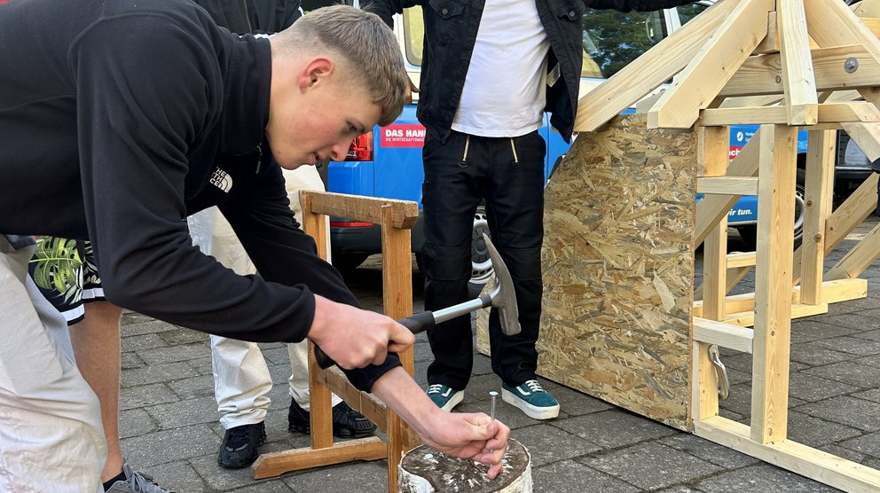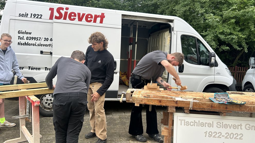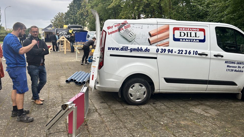 Das Handwerk war gleich durch mehrere Betriebe vertreten: die Heizung- und Sanitär-Dill GmbH sowie die Tischlerei Sievert. Unter deren Anleitung entstanden stabile Holzbänke, während die Handwerkskammer den jungen Gästen zeigte, wie vielseitig der Bereich Sanitär, Heizung und Klima ist – ein Berufsfeld, das heute mehr denn je Schlüsselrolle für Energiewende und Klimaschutz spielt.