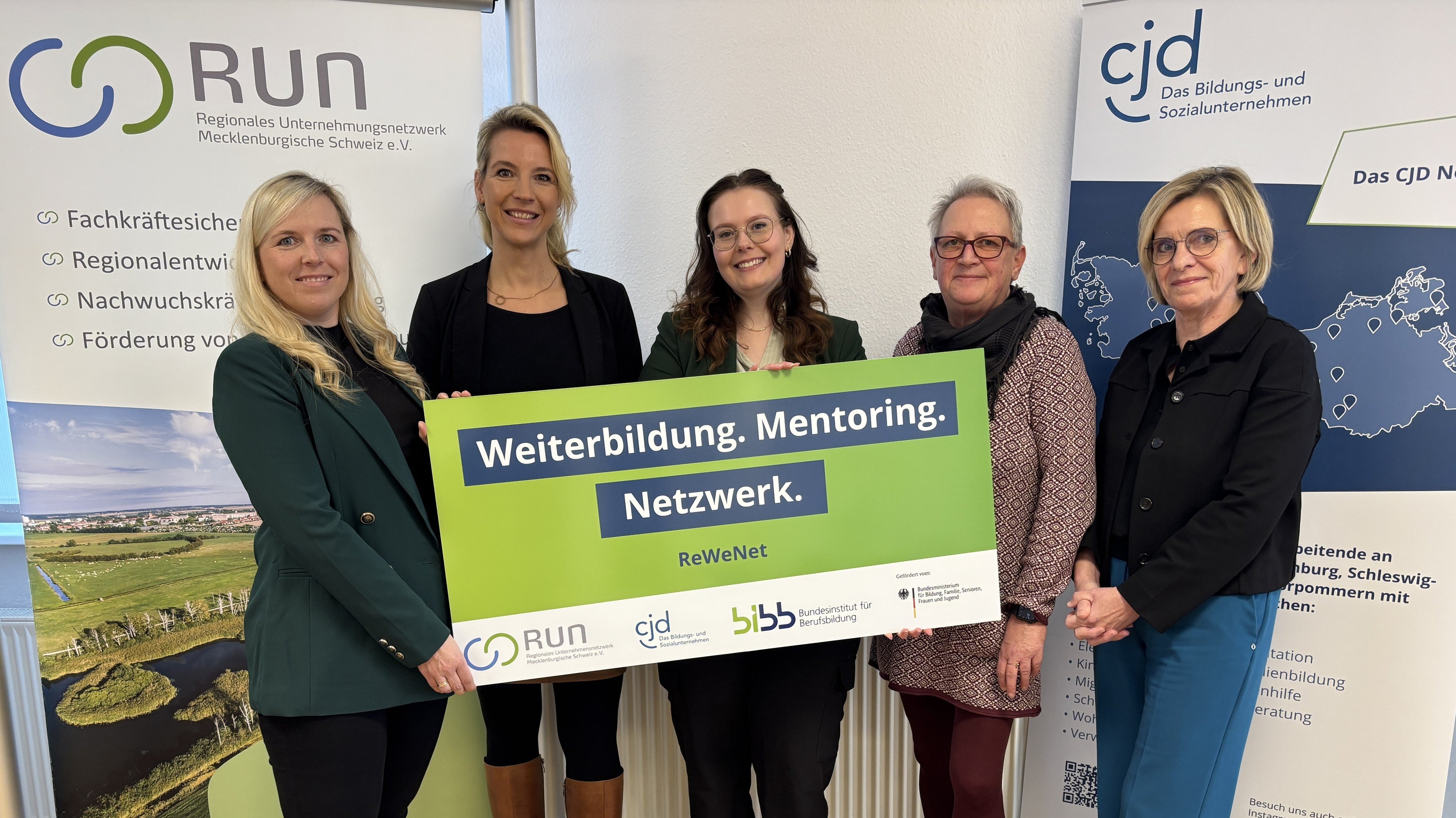 Das Projekt „Stärkung der Weiterbildungskultur in KMU der Mecklenburgischen Schweiz durch ein regionales Weiterbildungsmentoring-Netzwerk“ wird von CJD Nord und dem Regionalen Unternehmensnetzwerk RUN e. V. umgesetzt und vom Bundesinstitut für Berufsbildung (BIBB) fachlich begleitet und vom Bundesministerium für Bildung, Familie, Senioren, Frauen und Jugend (BMfBFSFJ) gefördert. Der Projektzeitraum läuft vom 01.12.2025 bis zum 30.11.2028.