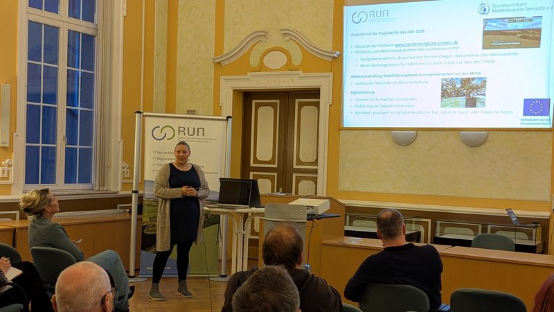 Anschließend gab Gina Schulenberg, Tourismuskoordinatorin der Mecklenburgischen Schweiz, einen ausführlichen Rückblick auf das erste Förderjahr und stellte die bisherigen Entwicklungen sowie die erreichten Meilensteine vor. Besonders erfreulich war die Bekanntgabe, dass auch das zweite Förderjahr positiv votiert wurde. Damit kann die erfolgreiche Zusammenarbeit fortgesetzt und an weiteren wichtigen Projekten gearbeitet werden.