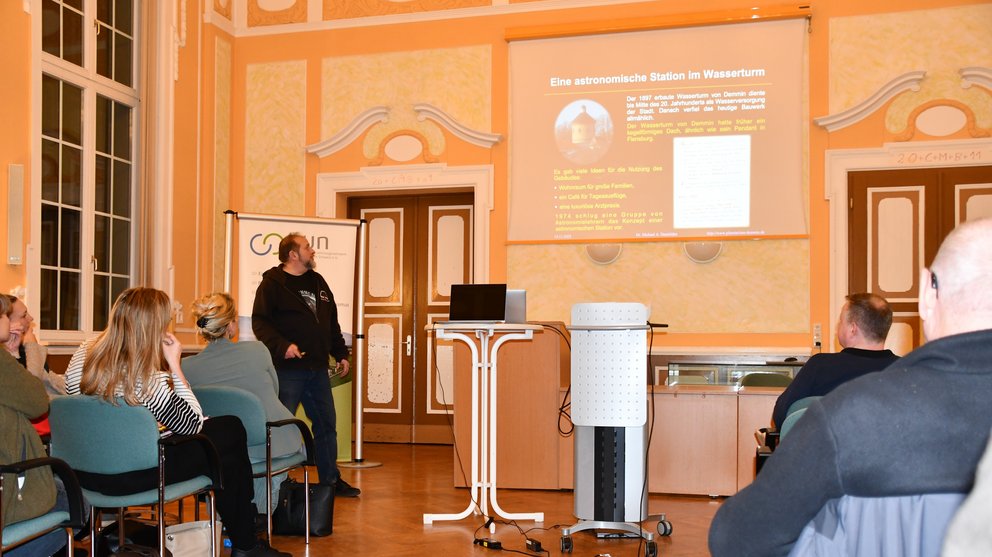 Im Anschluss gab Thomas Fitzke spannende Einblicke in die Beschilderung des Tollensetal-Radweges sowie die Entwicklung des neuen Ackerbürger-Radwegs. Darauf folgte Herr Dr. Danielides, der die Astronomiestation in Demmin vorstellte – ein außergewöhnliches kulturelles und wissenschaftliches Angebot, das bei den Gästen auf großes Interesse stieß.