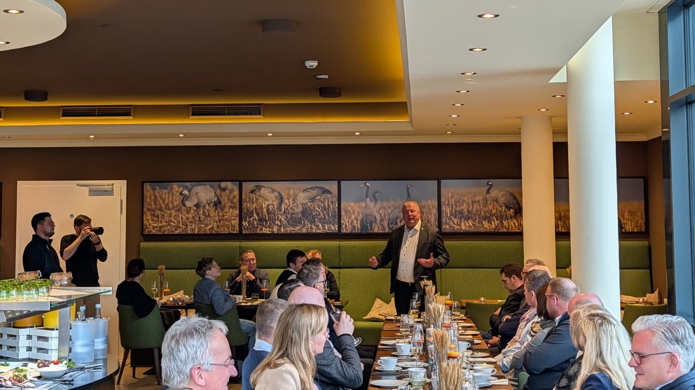 Am 09. Januar 2026 fand im Farmerhotel Basedow das Unternehmerfrühstück des Regionalen Unternehmensnetzwerks statt und bot einen gelungenen Auftakt ins neue Jahr. Rund 35 Unternehmerinnen und Unternehmer aus der Region folgten der Einladung und nutzten die Gelegenheit zum persönlichen Austausch, zur Vernetzung und zum gemeinsamen Dialog über aktuelle wirtschaftliche Themen.