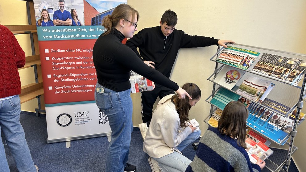Die Beratungsecke soll vor allem die vielen Flyer zu den Ausbildungsmöglichkeiten in und um Stavenhagen sowie die Hochschulangebote präsentieren.