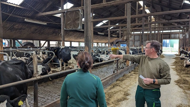 In Klockow begrüßte Familie Gropp acht Mädchen und Jungen auf Ihrem Landwirtschaftsbetrieb. Der bereits in 4. Generation geführte Betrieb hat sich auf die Milch- und Futterproduktion spezialisiert und betreibt außerdem eine eigene Biogasanlage. Über 400 Rinder, darunter ca. 200 Jungtiere werden von Familie Gropp und ihrem Team täglich versorgt. Auf dem Hof lernten die Schülerinnen und Schüler mehr über die vielseitigen Aufgaben in der Landwirtschaft und erfuhren, dass das Melken der Kühe auf dem Hof mittlerweile nicht mehr von Hand, sondern von drei Melkrobotern übernommen wird, die sich direkt im Kuhstall befinden.