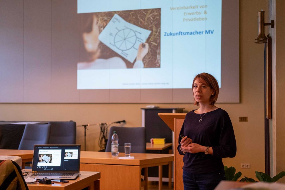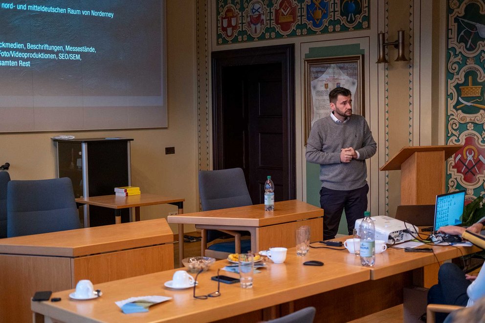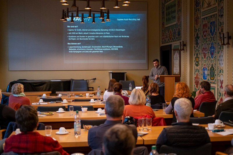 Im Anschluss daran führte Herr Kramer als Geschäftsführer der Grafik- und Internetagentur aus Stavenhagen aus, wie die Webseiten von Unternehmen technisch aufbereitet sein sollten, um auch gefunden zu werden. Er lenkte den Blick noch einmal auf bestimmte Instrumente, die durch Suchmaschinenoptimierung und einem guten Social Media-Auftritt auch von der gewünschten Zielgruppe gefunden werden.
