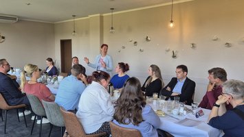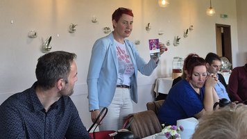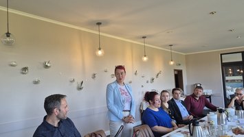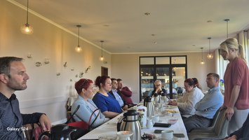 Unsere Gastgeber, Familie Hornburg-Zeneli, die mit ihrer Brasserie und dem Dorfladen bereits fest in der Region verwurzelt sind, konnten seit diesem Jahr ihr Portfolio um eine eigene Kaffeerösterei erweitert, was ihnen viel Anerkennung seitens der Teilnehmenden einbrachte. Ihr Engagement für regionale Produkte, Qualität und nachhaltiges Wirtschaften machte deutlich, wie vielseitig und zukunftsorientiert Unternehmen im ländlichen Raum agieren können. Als Bürgermeisterin von Grammentin durften wir Theresa Silberstein in unseren Reihen begrüßen. Sie bereicherte die Runde mit ihrem Beitrag, in dem sie unter anderem den engen Kontakt zu den ortsansässigen Unternehmen als wesentlich für den Zusammenhalt in der Region hervorhob. Ein weiteres Highlight des Morgens war der Impulsvortrag von Annette Riedel zum Thema "Warum Coaching und Weiterbildungen für den Unternehmenserfolg entscheidend sind!" Die deutschlandweit agierende Coachin für Unternehmens- und Personalentwicklung schilderte, dass sie in den letzten Monaten einen großen Unmut sowohl bei Arbeitgebern als auch bei Arbeitnehmern bemerkt hat. Besonders hob sie hervor, wie wichtig es ist, dass Unternehmen und Führungskräfte die Potenziale ihrer Mitarbeitenden erkennen und gezielt fördern. Nur so können beide Seiten – Unternehmen und Mitarbeitende – langfristig und erfolgreich zusammenarbeiten.