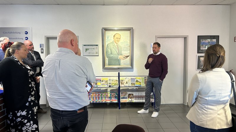 Im Rahmen einer exklusiven Führung durch das Unternehmen erhielten wir einen umfassenden Überblick über alle Abteilungen – von Redaktion über Satz und Layout bis hin zur Druckerei. Besonders eindrucksvoll war zu sehen, wie Print- und Digitalmedien hier Hand in Hand gehen. Ein besonderes Highlight war das digitale Quiz, bei dem unsere Teilnehmenden ihr Wissen unter Beweis stellen und attraktive Preise gewinnen konnten.
